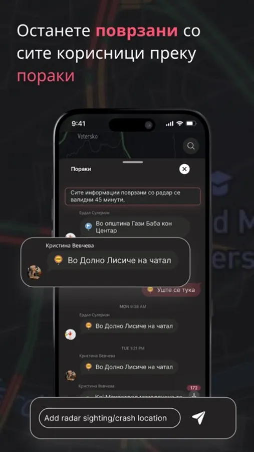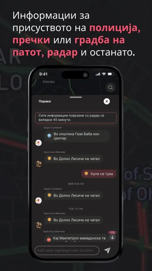 3. Заедничко Известување: Бидете дел од заедница за сообраќај. Споделете сопствени искуства и помогнете им на другите да донесат информирани одлуки.
