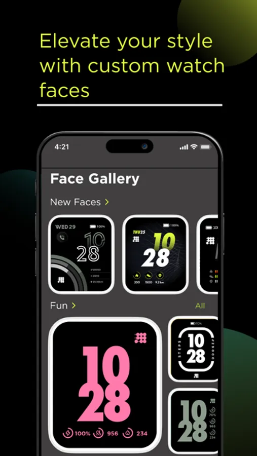 Manage your watch faces and there are over 150 rich watch faces available for download. Additionally, you can create your own watch faces.