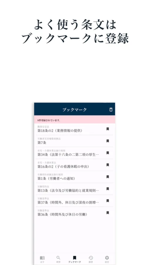 アプリ版では条文はすべて端末にダウンロードされた状態になるため、通信が発生しません。長い条項を呼び出す場合でも待ち時間は非常に短くなっています。条文の表示だけではなく、条文の検索もオフラインで実行可能です。