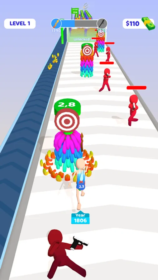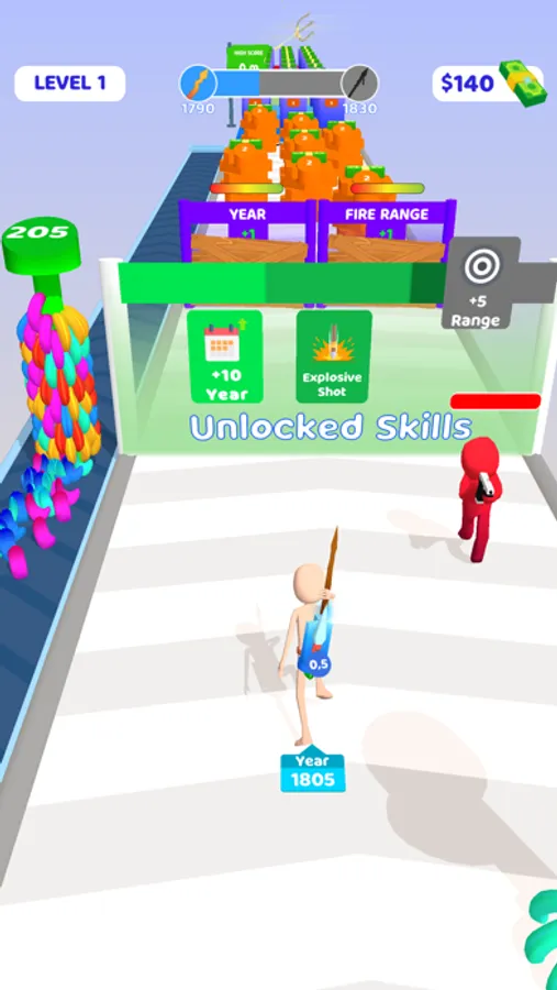 Throw your spears and collect bananas for minigame points: More banana, more powerfull skills. With skills you get better and better. At the end of the level, reach to the further point!