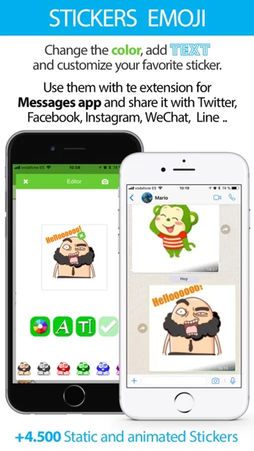 Stickers and emojis (+4500) to share with your friends. Edit them by changing the color, adding text and customizing it to your liking.