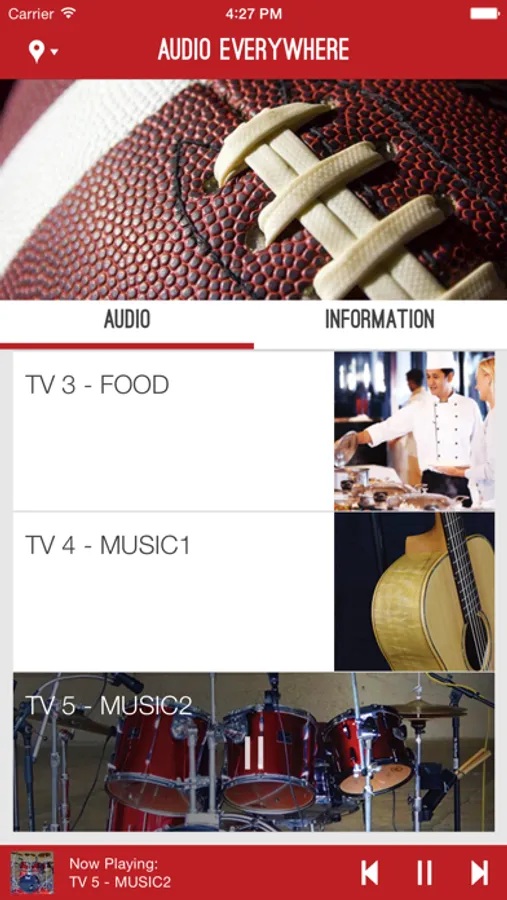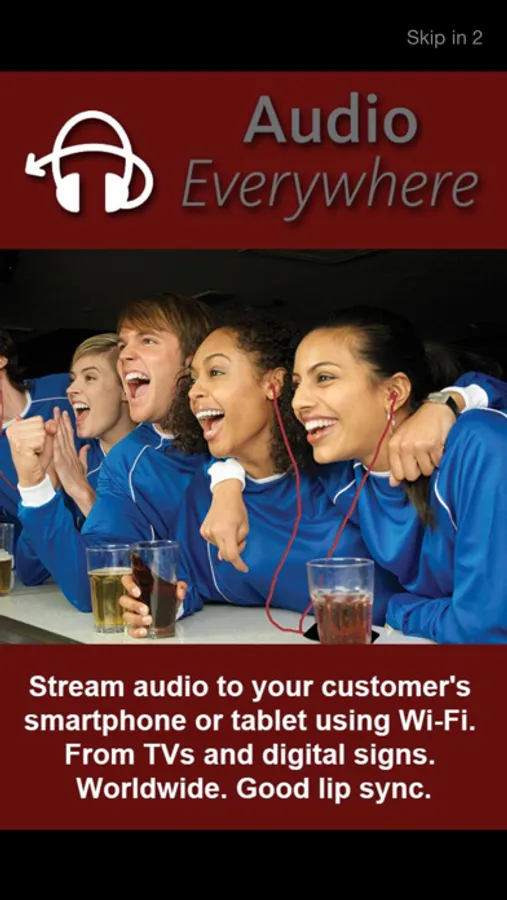 Listen to audio sources such as TVs on your iPhone, iPad, or other Wi-Fi enabled iOS device. The Audio Everywhere App enables you to pick from among numerous audio sources in venues such as gyms or sports bars that have the Audio Everywhere ExXtractor system. The audio is streamed over Wi-Fi so it does not burden your data plan. For TVs or other video sources, the Audio Everywhere system provides good lip sync. Users may choose to listen with a single earbud so that they can simultaneously socialize and hear the show or game. You can run the App in background mode so you can listen while you surf the Internet.
