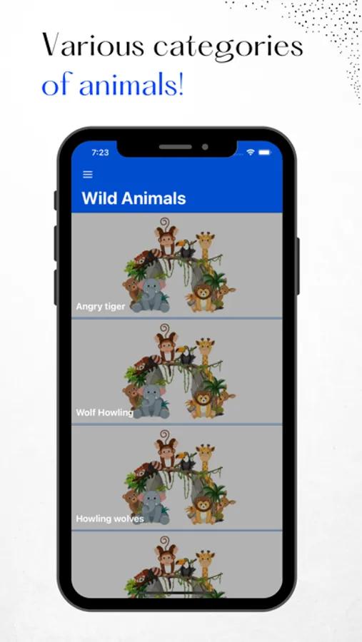 The app has a simple, modern and intuitive design, which features all the animal sounds.