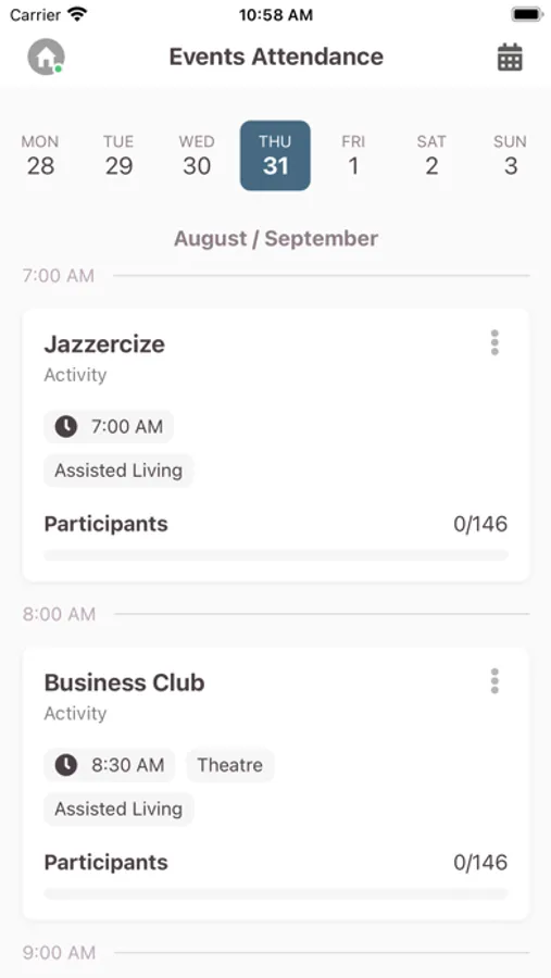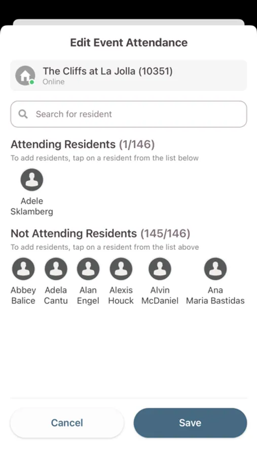 The Aline Attendance empowers staff and enhances resident satisfaction by efficiently managing and monitoring event activity tracking. Designed with senior living operators in mind, this mobile app simplifies the process of taking attendance, ensuring that every resident's participation is recorded accurately and effortlessly.