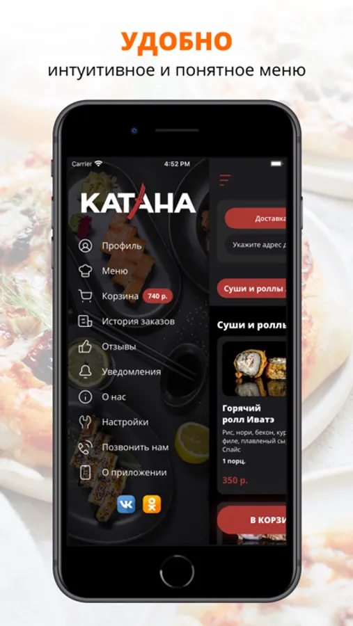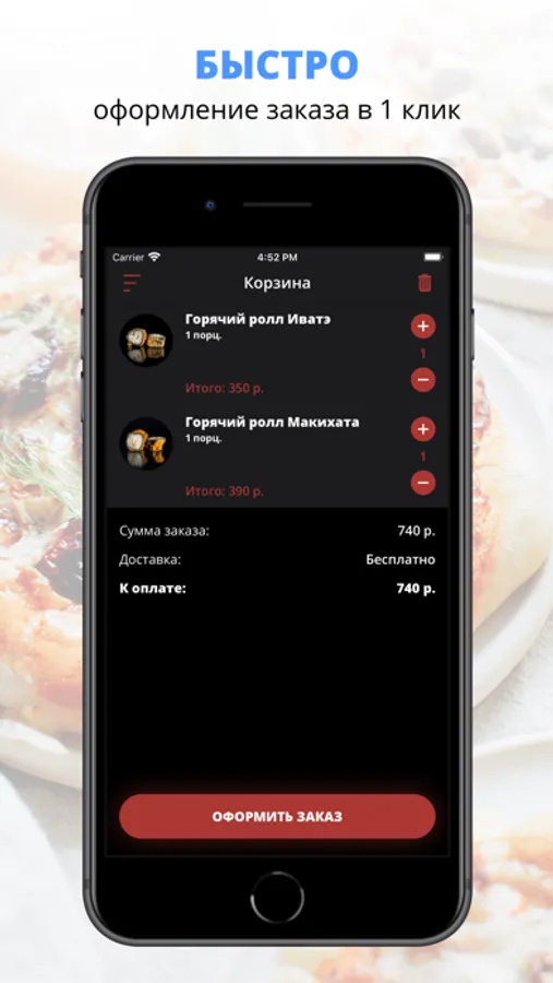 Скачивайте наше приложение, оформляйте заказ и наслаждайтесь любимой едой, где бы Вы ни были! Приятного аппетита!