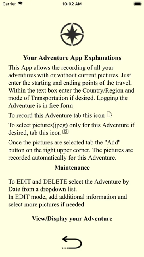All the information is contained(Database) within your device for personal enjoyment, also it allows to select personal adventure pictures from the photos app.