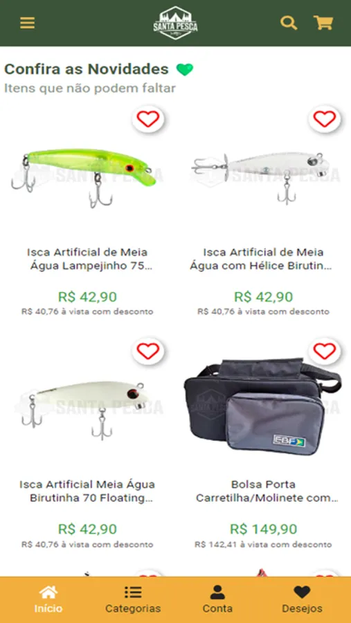 A santa pesca é um verdadeiro shopping online para o pescador(a) e aventureiro(a). É possível encontrar todos os itens para deixar a pescaria mais produtiva e para acampamento mais confortável. As melhores marcas da pesca ou camping no app da santa pesca você encontra.