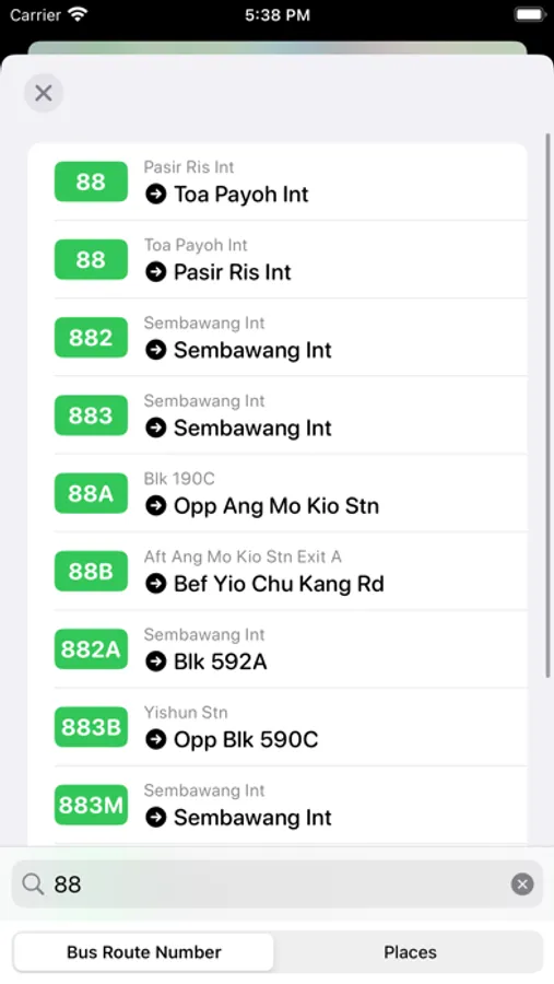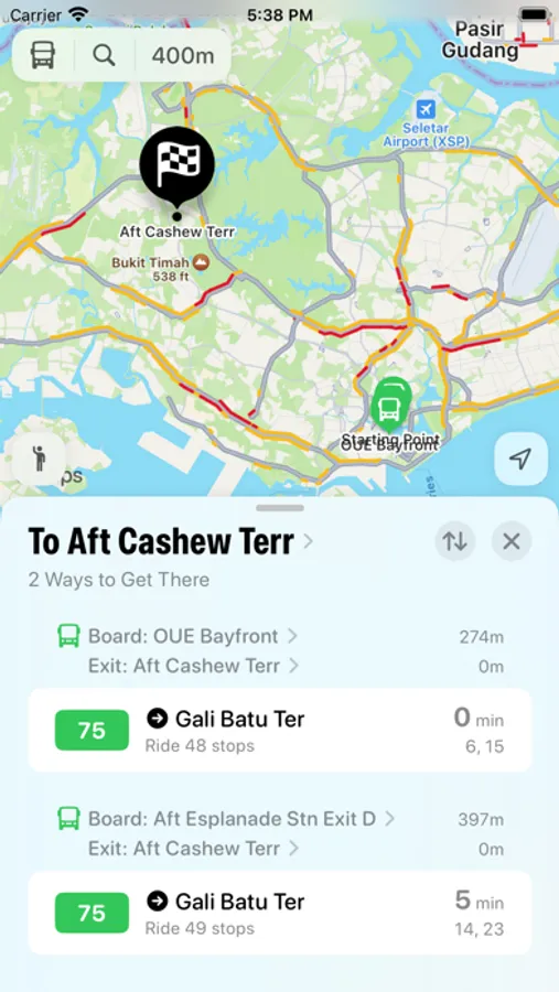 Starting Point: Touch and hold the map to set any place as the starting point, and view nearby bus stops and bus arrival times.
