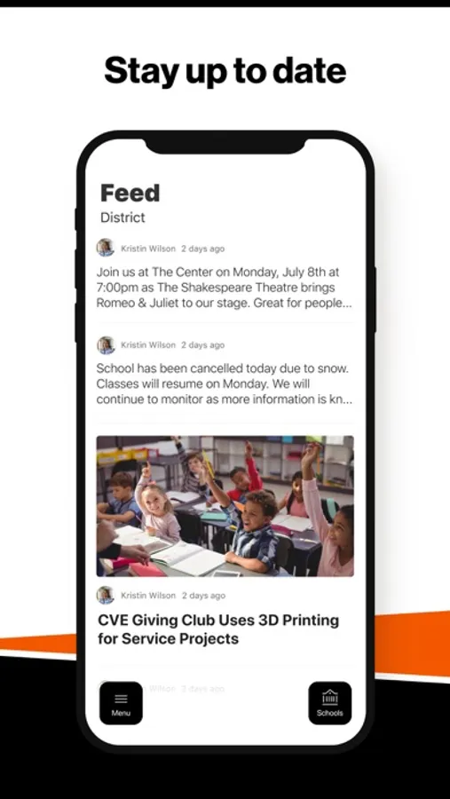 In the Live Feed is where you'll find updates from the administration about what's going on in the district right now. Whether that's celebrating a student's success, or reminding you about an upcoming deadline.