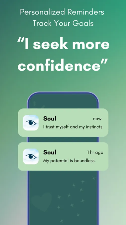 A new class of daily affirmations app—every affirmation from Soul is custom written for your situation to manifest your most powerful self. Share how you're feeling, and instead of receiving one-size-fits-all “I am” quotes, Soul delves deep into your emotions to create affirmations that speak directly to your heart. Whether you're seeking motivation, anxiety reduction, help with law of attraction, or gratitude practice, Soul is here to uplift you with words that resonate with your unique spirit. Rekindle your inner light and let Soul guide you to serenity and strength, one affirmation at a time.