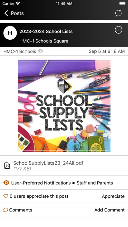 • View all district, school, and classroom communication and receive app notifications