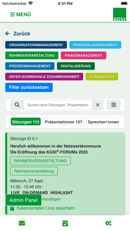Mit der App zum KGSt®-FORUM können Sie im Nachgang Inhalten "on Demand" ansehen. Des Weiteren haben Sie die Möglichkeit an Live-Abstimmungen während der Fachveranstaltungen teilzunehmen. Nutzen Sie die App um auf das Veranstaltungsprogramm, die Ausstellung und das Ausstellerverzeichnis zuzugreifen. Erfahren Sie mehr über die Referierenden. Bleiben Sie vor Ort dank der Pushnachrichten auf dem Laufenden.