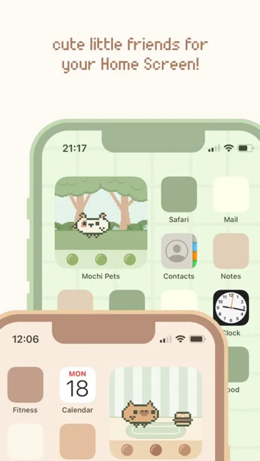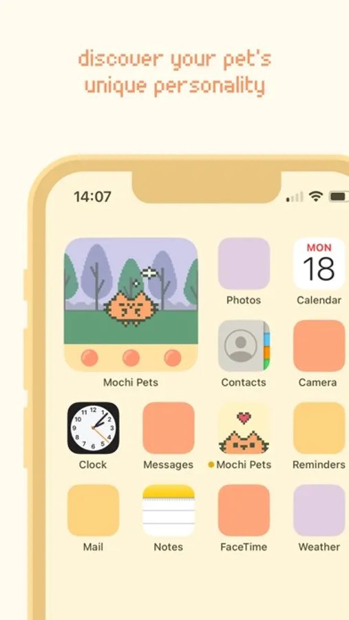 Mochi Pets is a cute virtual pet game that lives on your Home Screen. Its lovable pixel-art pets keep you company as you use your phone. Care for your pet throughout the day by feeding, petting and cleaning after them. This app features interactive widgets so you can take care of your pet right from the widget!