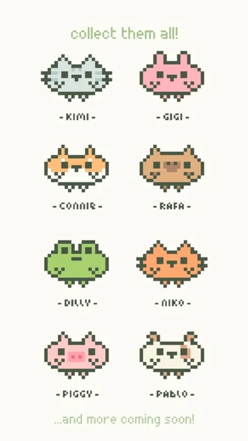 There are currently 8 pets, more than 30 foods and 12 backgrounds and skins to unlock, with many more coming soon!