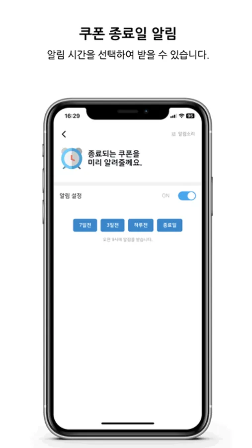 쿠폰의 유효기간 종료되기 전 미리(일주일, 3일, 하루전, 당일) 알림해 드립니다.
