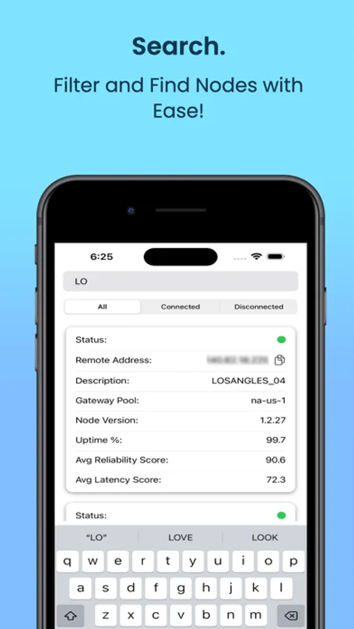 Advanced Search: Filter nodes based on Remote Address, Gateway Pool, and Version, making management a breeze.