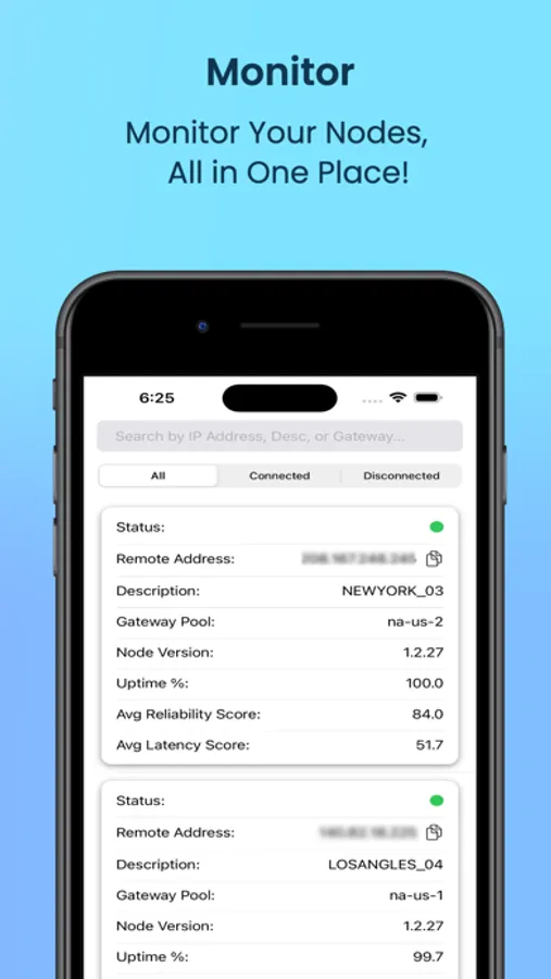 Real-Time Status: At a glance, know if your nodes are online or offline.