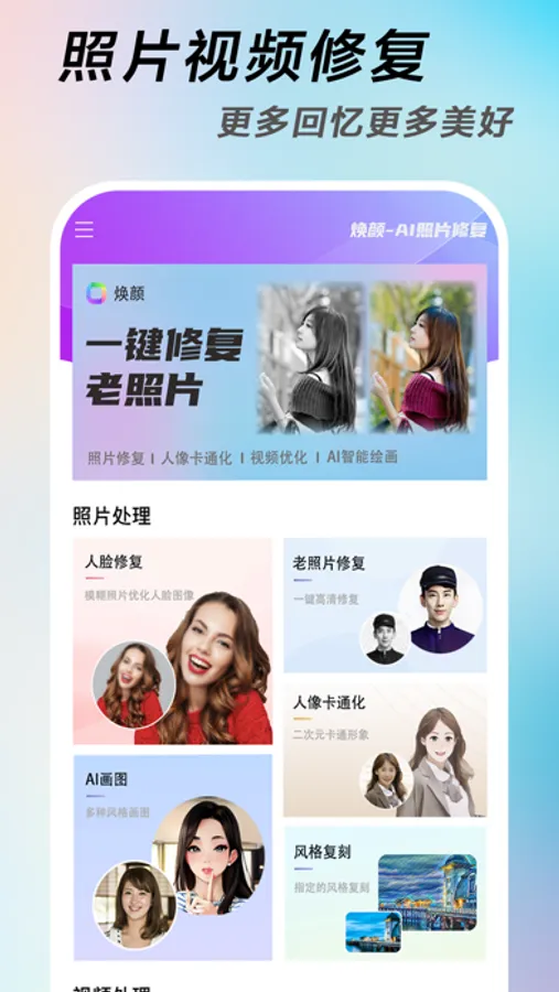 焕颜-AI照片视频修复,基于最先进的AI人工智能技术对照片、视频进行修复与卡通化。