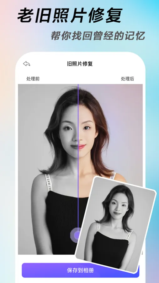 一键轻松修复旧照片,可以将模糊照片对面部进行了高清还原上色修复。