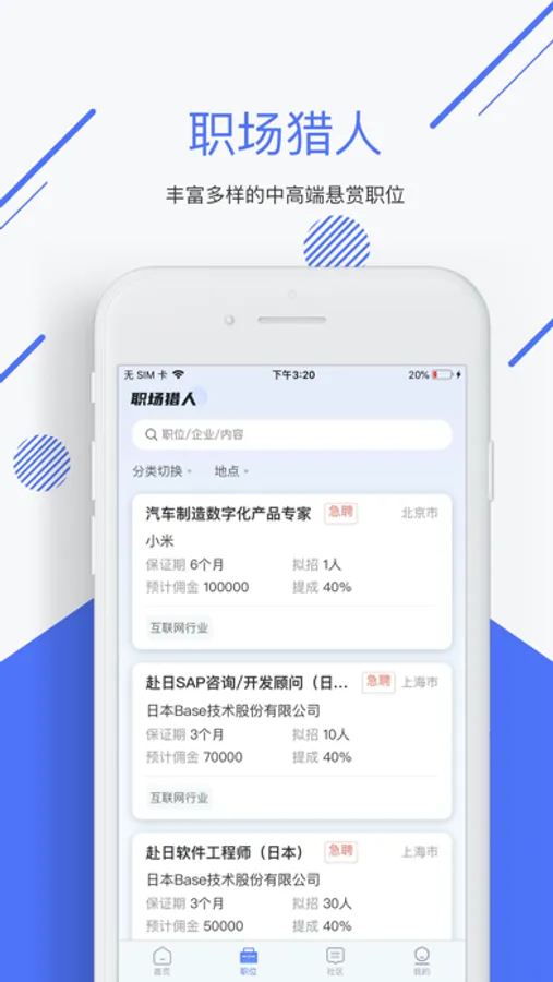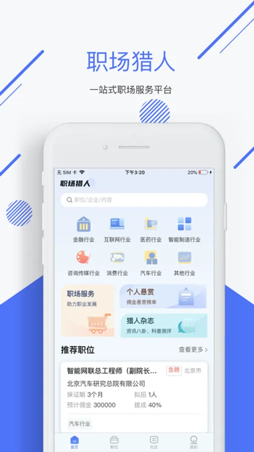 职场猎人,一站式职场服务供应商,打造国内版“暗网”悬赏平台,用链接打破求职者、职场人、企业面临的困境。