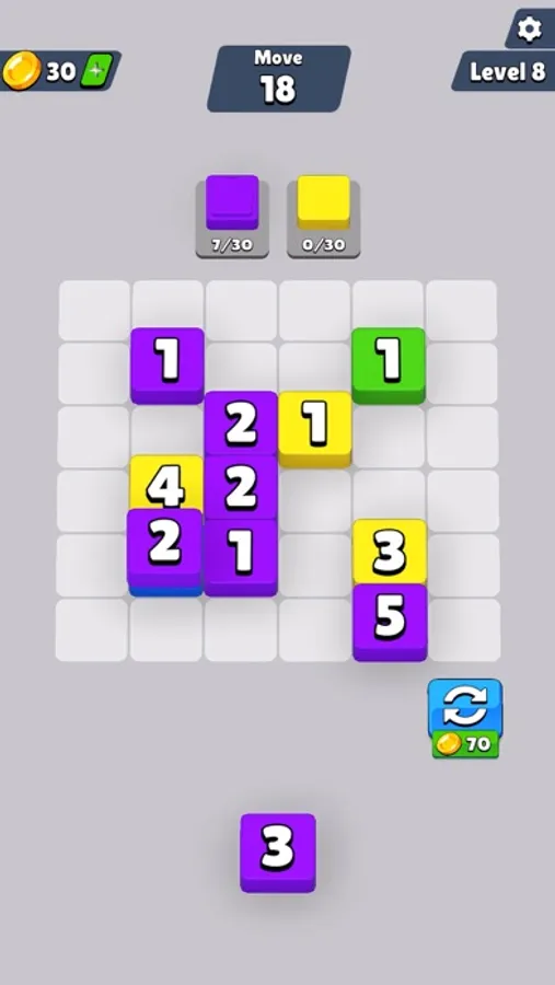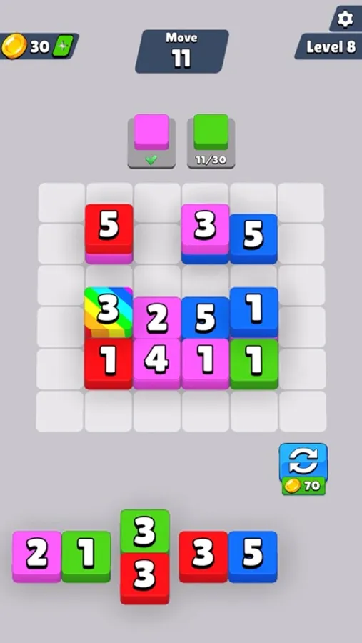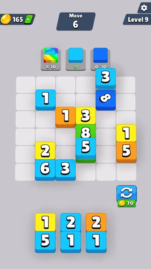 Add pieces one on top of the other to reach floors 10 and above to destroy them and clear the area.