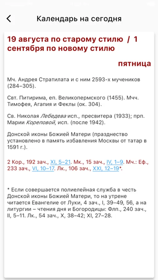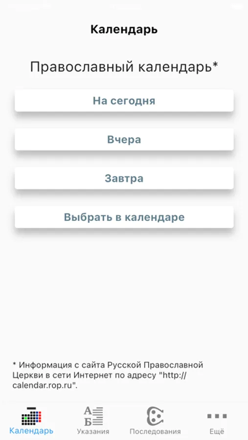 2. Официальный календарь Русской Православной Церкви в сети Интернет по адресу "http://calendar.rop.ru". Содержание соответствуeт печатной версии Патриаршего календаря Издательства Московской Патриархии.
