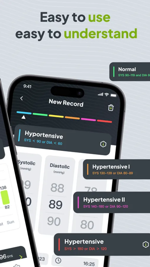 - **Charts and Trend Analysis:** Visualize your blood pressure data through intuitive charts and trend analyses, helping you better understand fluctuations and take timely action for your health.