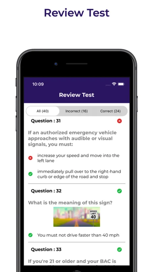 Instantly receive test scores and review answers to assess performance.