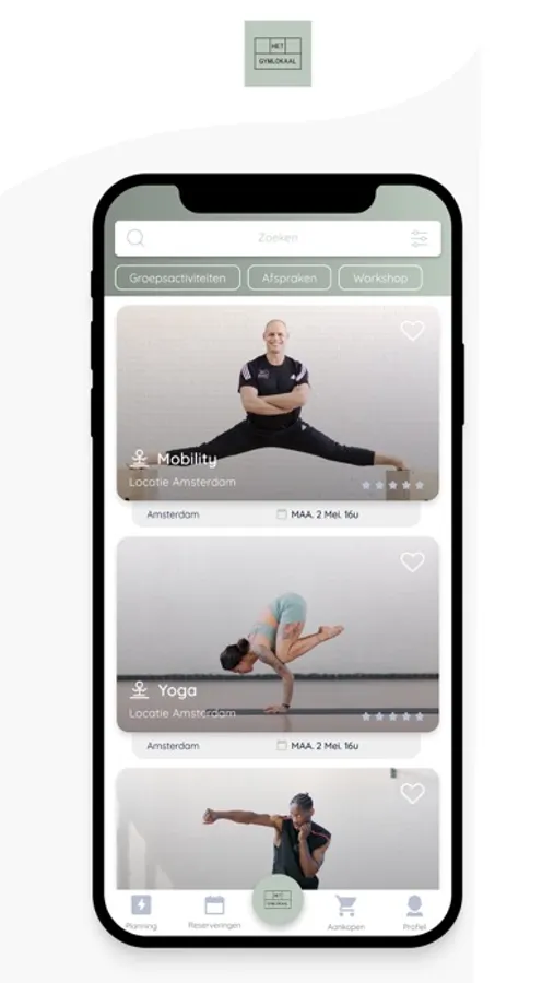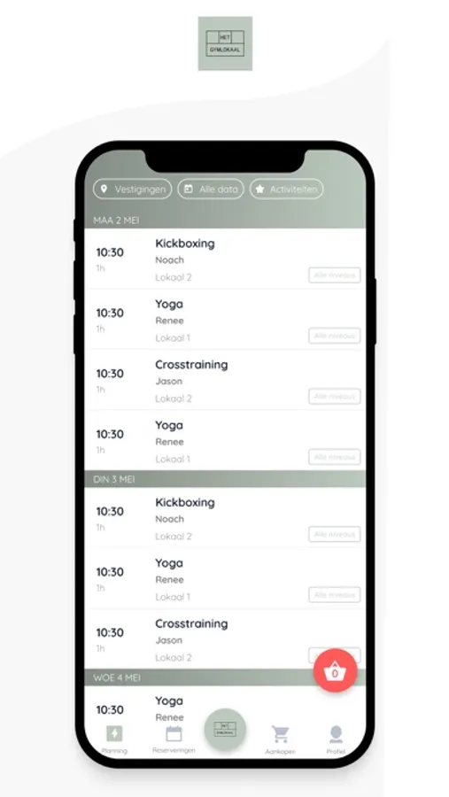 Welcome to the Het Gymlokaal app, where sports and authenticity come together for an unparalleled experience. Our varied program includes a wide range of activities, such as (Kick)boxing, Mobility, Crosstraining, Yoga, Gymnastics, Pilates, Barre, Weightlifting, HIIT, and Fitness. With this extensive offering, there is always an activity that perfectly matches your personal preferences. The activities are suitable for all levels, from beginners to advanced. All our classes are led by high-quality coaches who prioritize your athletic growth and well-being. At Het Gymlokaal, you're never done learning; we stand for continuous development and personal guidance. Explore our dynamic class schedule and effortlessly reserve your spot in classes that align with your personal goals through our simple booking feature. You also have the option to purchase credits and memberships within the app, so you can start working out immediately. We look forward to welcoming you!