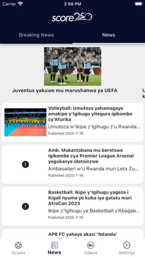 Score250 is the ultimate mobile app for sports real-time updates, news, and highlights of live and non-live games in Rwanda. Stay informed with the latest scores, goal differences, and standings, while also enjoying breaking news and exciting highlights. Whether you're a sports fanatic or just want to stay up-to-date Download it now and never miss a moment of the action.