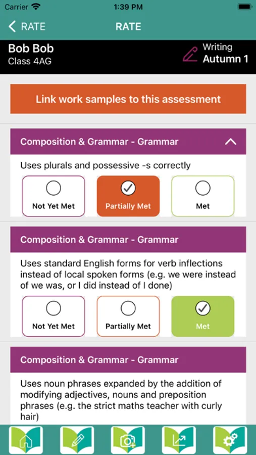 Take a photo on your device of any of your pupils’ work, and save it straight to the app! Have children’s work available immediately and anywhere, by tagging the work to specific pupils, books, and even RATE standards – transforming assessment and moderation meetings once and for all!