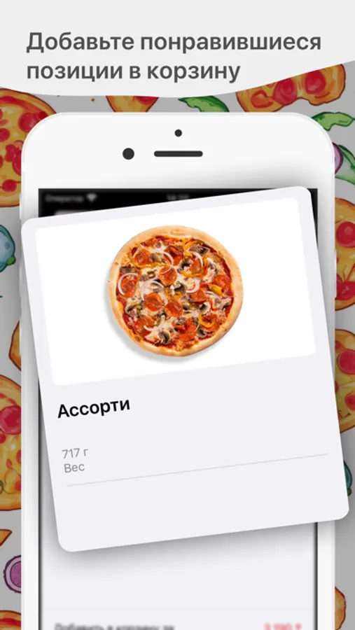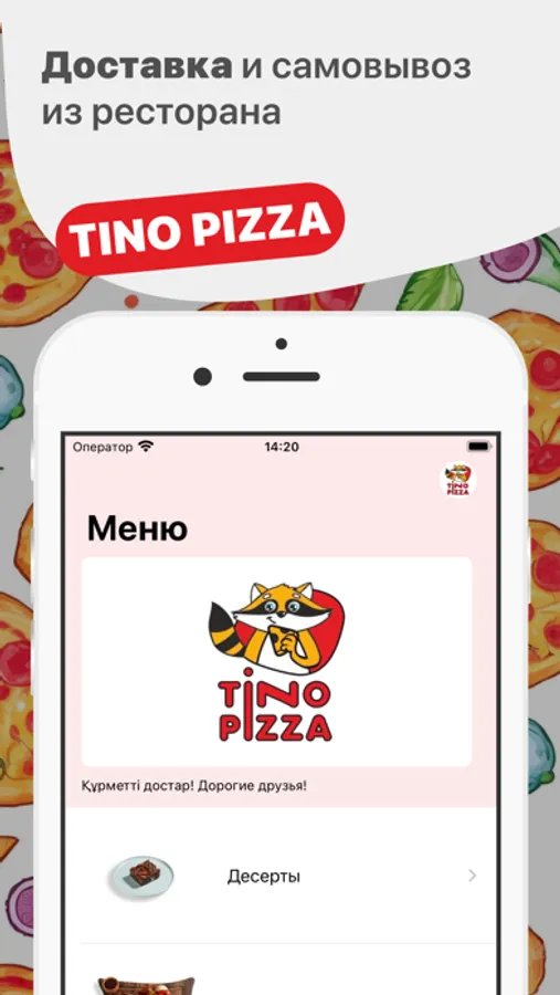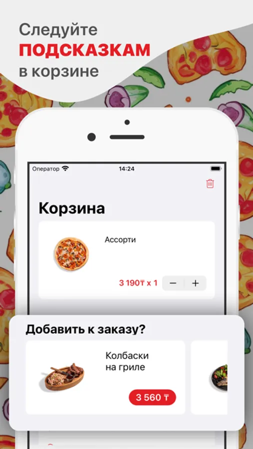 Как сделать заказ в приложении “TINO PIZZA”: выберите понравившиеся позиции из меню, добавьте их в корзину и перейдите на экран оформления заказа (по нажатию на иконку корзины).