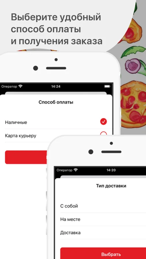Укажите время, когда хотите прийти за своим заказом или выберите доставку с указанием времени и адреса доставки.