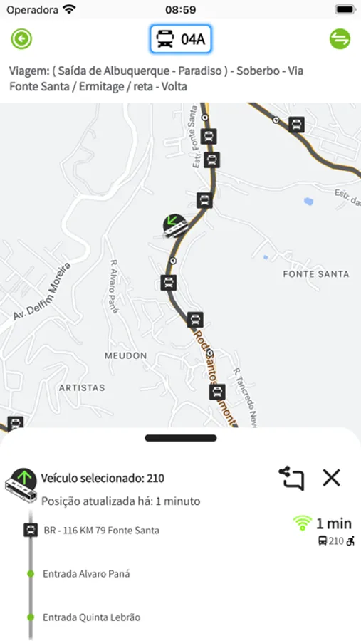 - Localização em mapa dos pontos de parada e de venda de créditos nas proximidades