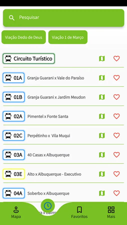 - Favoritar linhas. pontos de parada e deslocamentos planejados