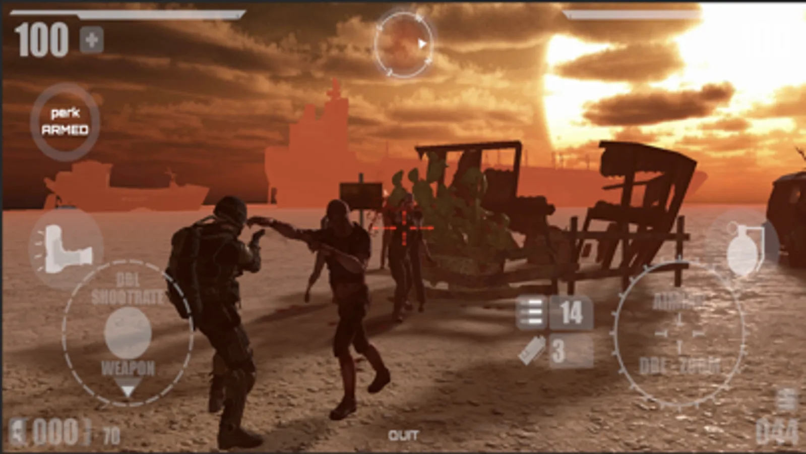 - There are numerous stages with various types of zombies and giant Boss monsters.