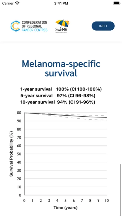 The Prognostic Instrument for Melanoma (version 2.0) is a population-based tool that is based on a large amount of clinical and histopathological data from the Swedish quality registry for cutaneous melanoma (SweMR). In this updated version of the instrument, data from more than 70,000 patients with primary malignant melanoma between 1990 and 2021 have been included. Through a combination of several independent risk factors, melanoma-specific survival has been analysed for a variety of risk groups. The instrument calculates survival 1 to 10 years after diagnosis and provides an analysis at group level but can never provide an exact individual prognosis. The results are presented with 95% confidence intervals.