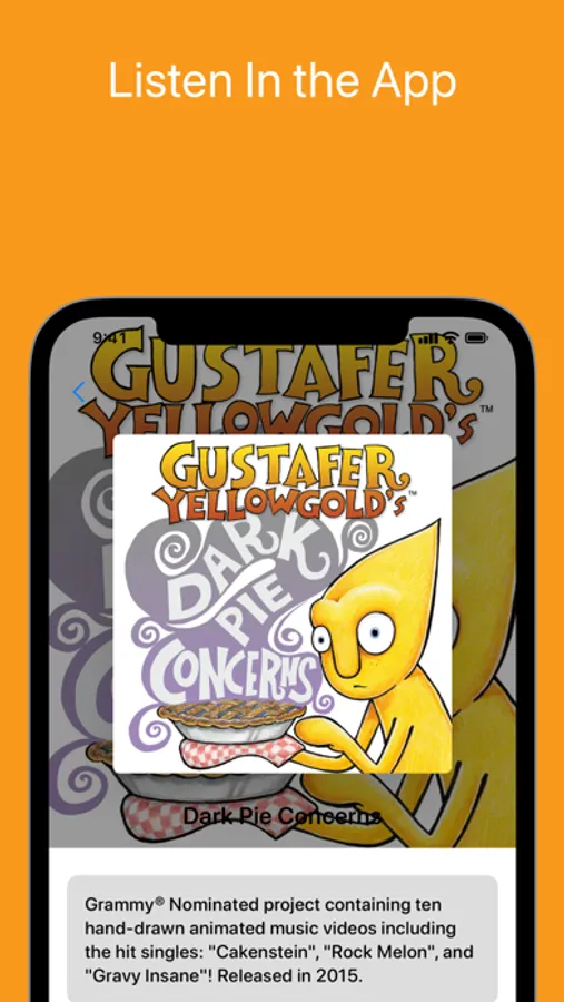 The illustrated music video collection chronicles the exploits of Gustafer, a friendly yellow alien who has come to Earth from the Sun to live out an explorer's life in an anthropomorphized version of the Minnesota woods.