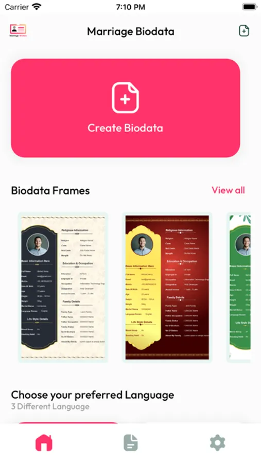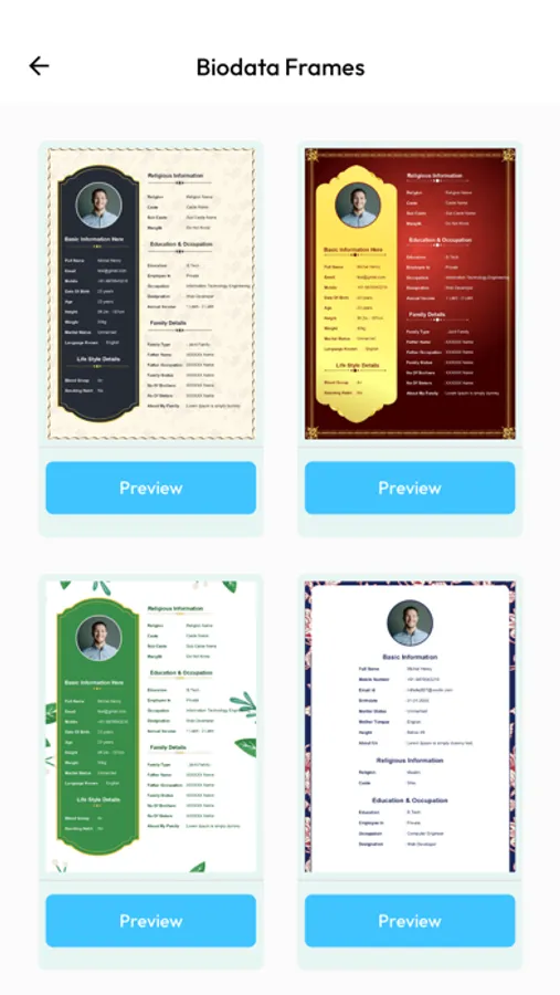 Ideal Jodi Marriage biodata Builder offers to build your biodata easy and super fast. And also you can download easily with choosing your suitable frames and download it.