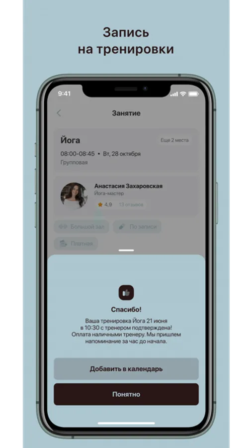 - Записаться на групповые тренировки;