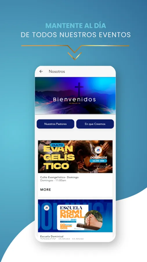 * Ver e interactuar con los eventos y ministerios.