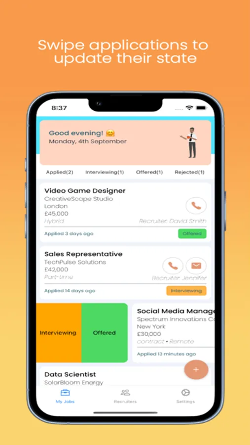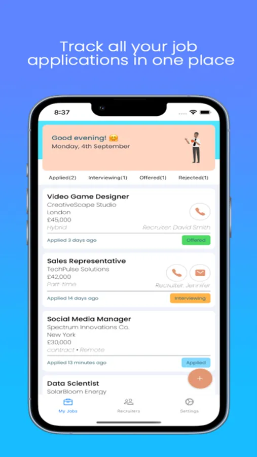 - You can easily access information about the positions you've applied for, including application applied date, company name, job title, salary, recruiter details, etc