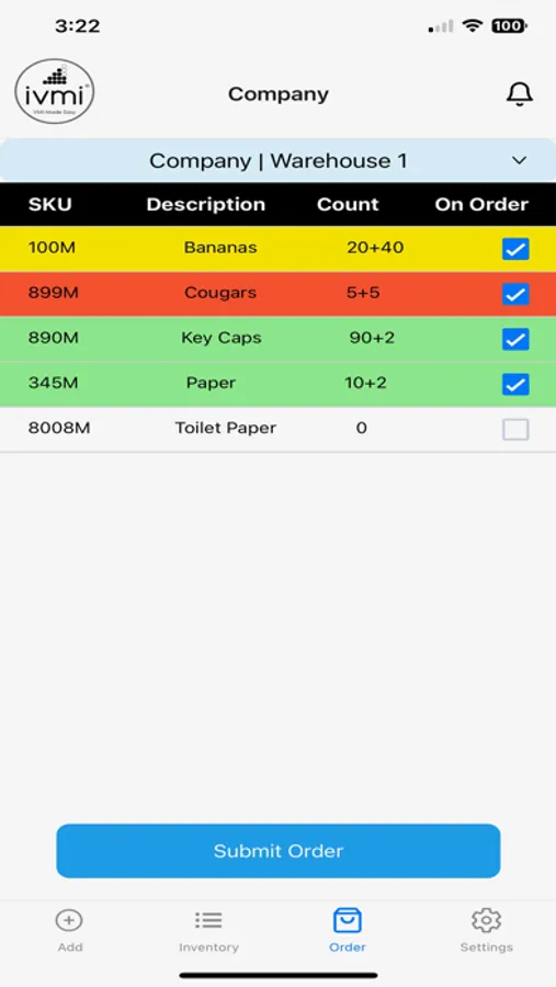 With iVMI, you can effortlessly track your inventory, see which items are running low or are critical and tag items that need to be ordered or are on order. You can create multiple sites and share inventory data with your team members collaboratively. You can filter by keywords or barcodes and find the item you are looking for easily. Edit and update inventory counts and in the future autonomously update counts using StockVUE smart scales. Never Run Out!