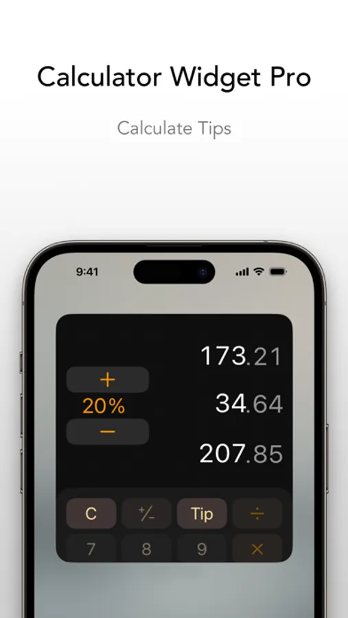 Add the calculator widget to your Home Screen and easily do calculations of addition, subtraction, multiplication, division, advanced scientific functions and even tips with Calculator Widget Pro.