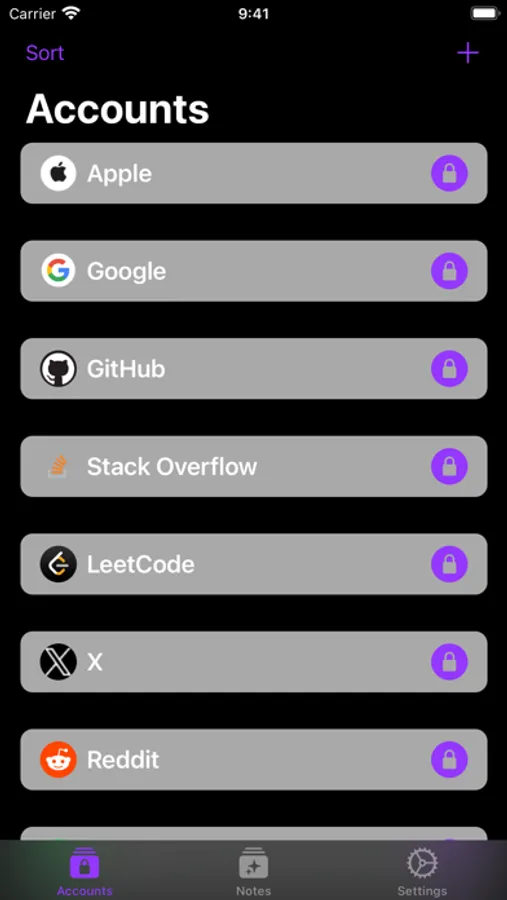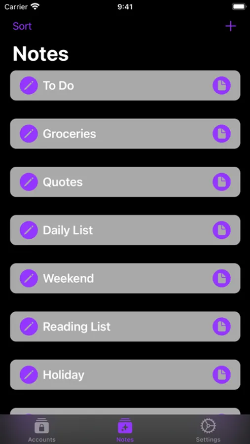 - Secure Notes: