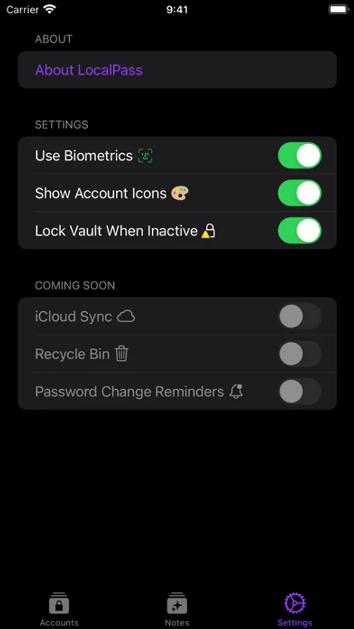 In addition to password management, LocalPass allows you to store secure notes. Personal information, and other sensitive data are all encrypted, giving you peace of mind.