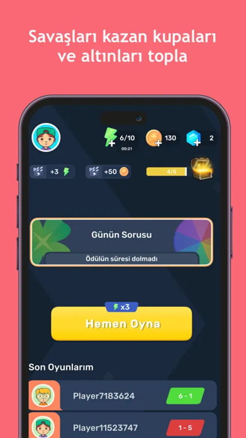 Bunlar gibi binlerce eğlenceli bilgileri keşfet ve rakiplerinle canlı bir düelloya katıl. İstersen gerçek arkadaşlarınla yarış, istersen yeni insanlarla tanış.