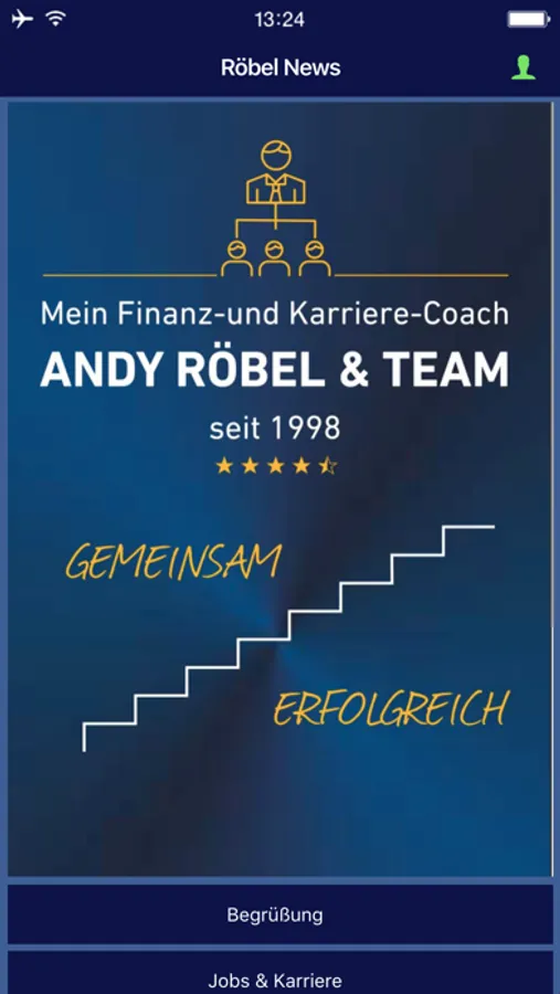 News- und Service- App für Kunden und Interessenten zu allen wichtigen Finanzthemen. Ob Finanzierungen aller Art, Kapitalanlagen, Vorsorge und Absicherung, Bausparen und Immbilienerwerb, Modernisierungen. Für Privat und auch Geschäftskunden. Downloaden von Checklisten, Tipps für einen erfolgreichen Vermögensaufbau & Vermögenssicherung. Stellenanzeigen von Firmen, die Mitarbeiter suchen. Informationen über mich als Herausgeber der App, als Finanz- und Karriere- Coach, sowie Info über unser Team und die Kontakmöglichkeiten zu uns.