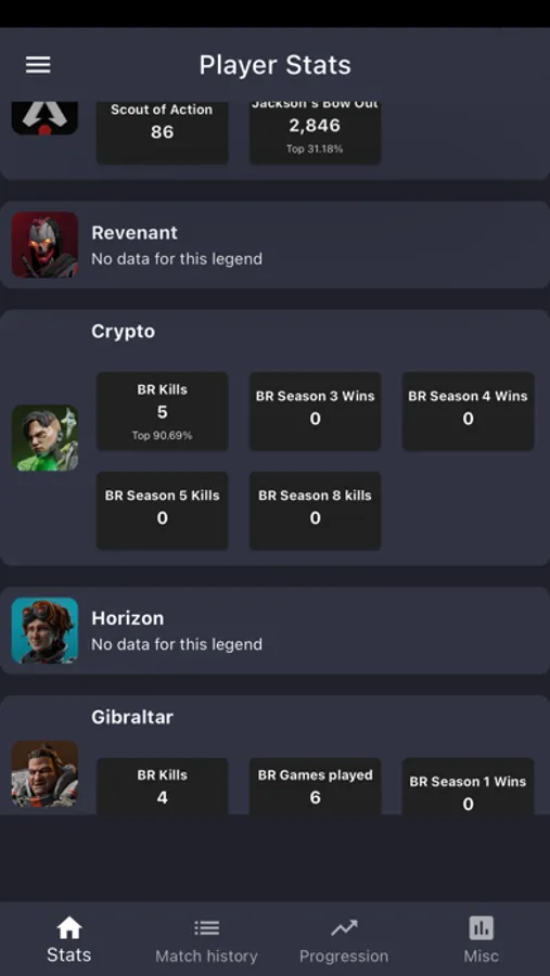 The app allows you to track your player statistics, including your match history, progression and other misc data. You can also find the map rotation for all modes available in game.