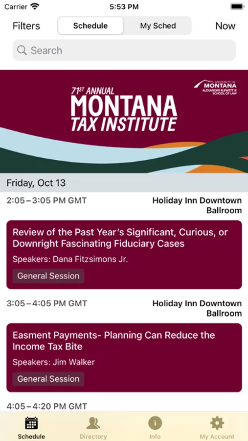 Conveniently browse the entire schedule for 71st Annual Montana Tax Institute. Get the key information of your event without ever having to crack open an event guide.